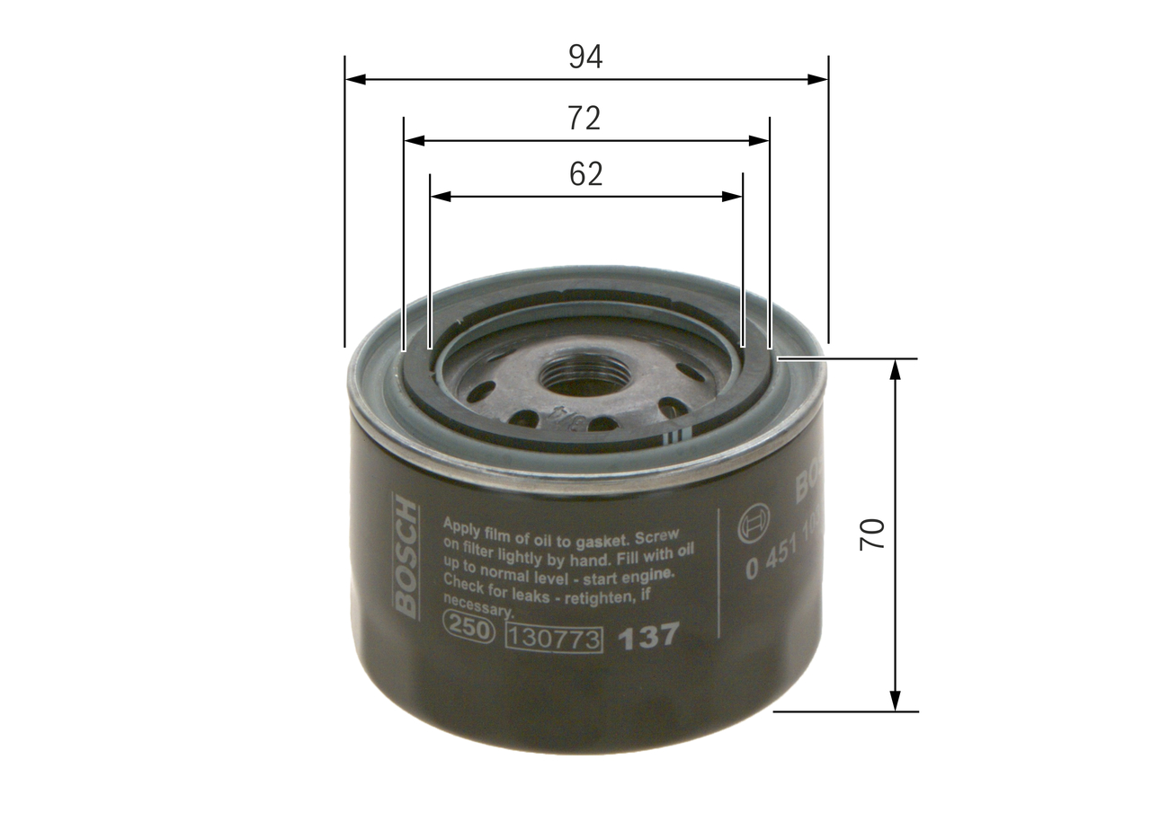 Filterausführung: Anschraubfilter | Höhe: 70 mm | Gewindemaß: 3/4\" 16 UNF-2B | Außendurchmesser: 94 mm | Dichtringaußendurchmesser: 72 mm | Dichtringinnendurchmesser: 62 mm